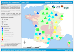 Le suivi scientifique de cette situation fait l’objet du Bulletin national de situation hydrogéologique qui, chaque début de mois, présente à l’aide de cartes commentées l’évolution mensuelle des ressources en eau pour la France métropolitaine.